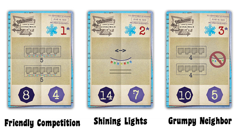 In Welcome To...Winter Wonderland, every house that you build in numerical order will have lights strung between them and contribute to scoring points at the end of the game. Includes 50 sheets and 3 new city plans!